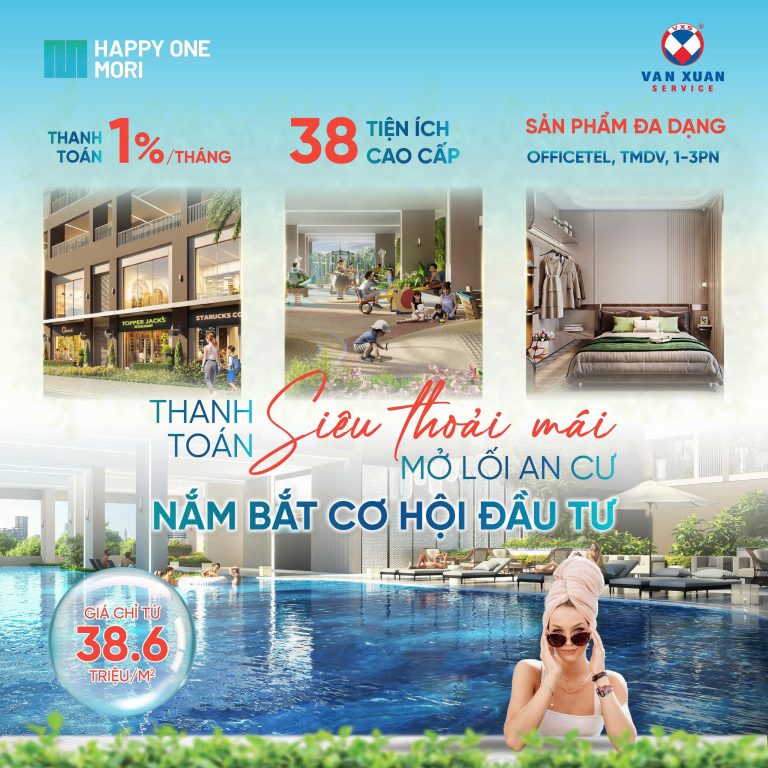 - Chủ đầu tư Vạn Xuân Group của Happy One Mori cực kỳ tâm huyết với dự án khi hợp tác với đơn vị Nhật Bản để cho ra các tiện ích mang hơi hướng Nhật Bản cực đẹp, chủ yếu vào mảng xanh và các tiện ích về thể thao, thư giãn với tổng số tiện ích lên đến hơn 33 tiện ích như: