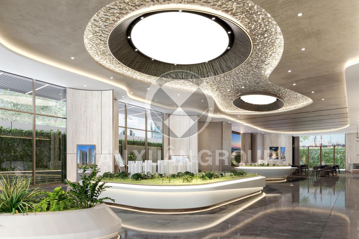 • Tầng Trệt: Là khu vực sảnh chung, bao gồm Khu vực trưng bày mô hình kiến trúc hoành tráng, Quầy Lễ tân, Sảnh sự kiện chuyên nghiệp, Phòng Media, Signature Lounge, Pantry và Kid room… tạo nên một tổ hợp dịch vụ hoàn chỉnh.